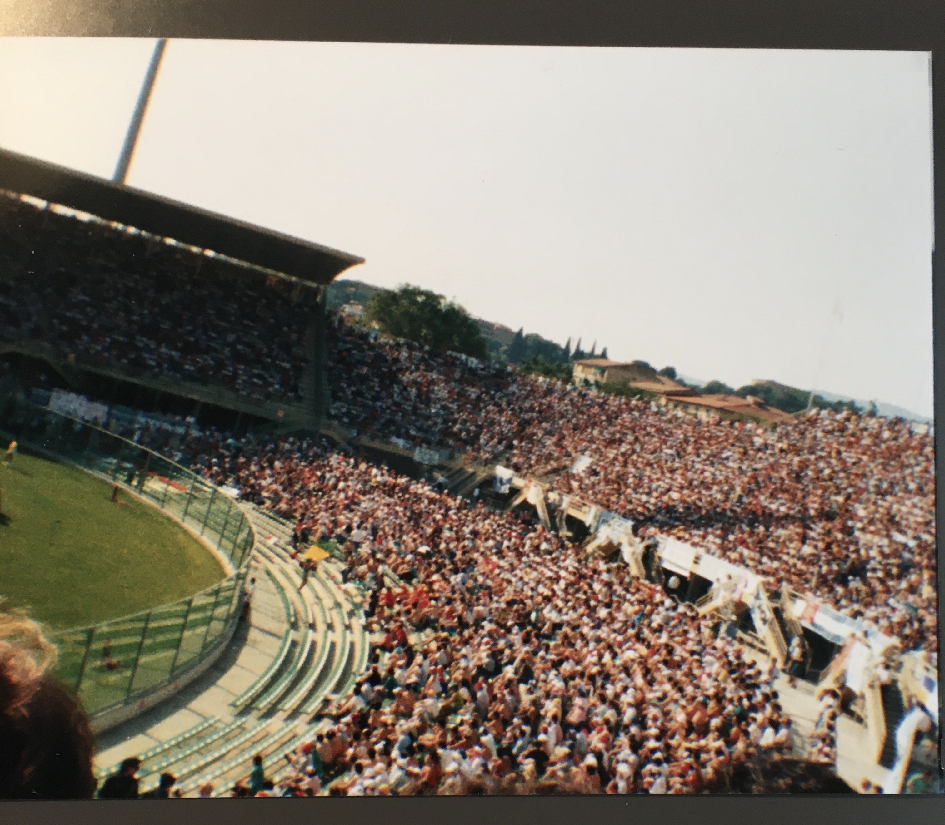 Italia ’90 , riuscii a vedere tre partite dal vivo, purtroppo nessuna dell’Italia, ma fu comunque una bellissima esperienza , soprattutto nei miei ricordi di 15 enne, di grande gioia, condivisione e fratellanza con i tifosi di tante nazionalità diverse: la prima partita a cui assistetti fu Austria – Cecoslovacchia nel girone eliminatorio , le due nazionali erano nel girone dell’Italia il match si gioco’ a Firenze, successivamente vidi a Genova l”ottavo di Finale fra Eire -Romania terminato con la vittoria ai rigori dell’Eire futuro avversario dell’Italia ai quarti ed infine di nuovo a Firenze il quarto di finale tra Argentina e Jugoslavia. Furono match interessanti anche sotto il piano politico: la Cecoslovacchia era ancora una nazione unica, la Romania si era da poco liberata dalla dittatura comunista di Ceausescu, la Jugoslavia era ancora unita prima della frantumazione iniziata nel 1991, fu quella anzi l’ultima partita della Jugoslavia unita ad una grande manifestazione calcistica internazionale, infatti nel 1992 seppur qualificata rinuncio’ alla partecipazione ai campionati europei, al suo posto venne ripescata la Danimarca che incredibilmente si laureò campione d’Europa.