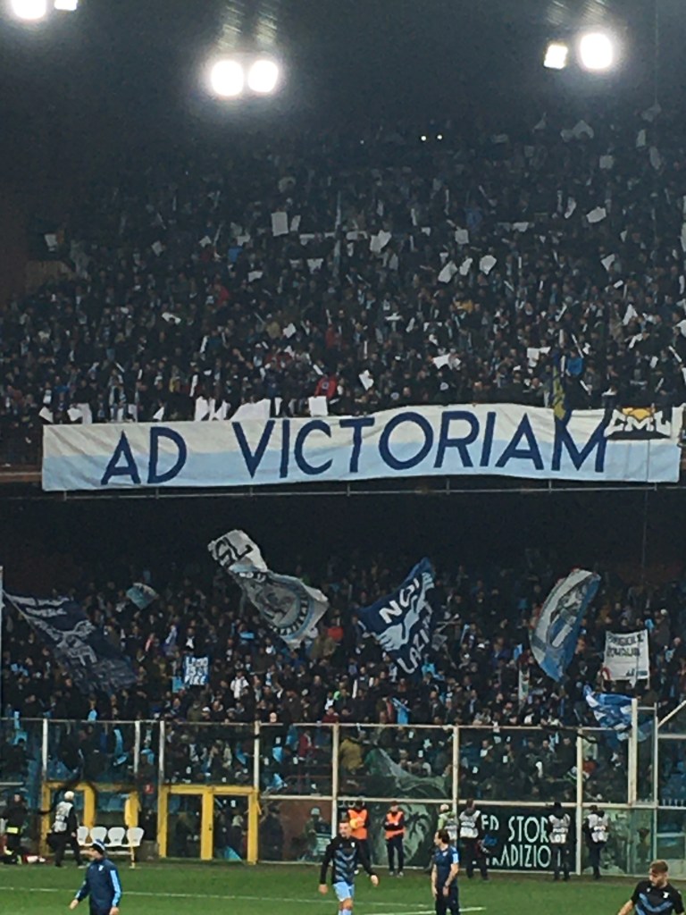 AD VICTORIAM campeggiava su uno degli striscioni dei tifosi biancocelesti ” alla vittoria”, e cosi è stato: l’ennesima la diciottesima in 25 partite, la diciassettesima nelle ultime 20 partite , una squadra oliata a perfezione dove ognuno sa ciò’ che deve fare, dove i giocatori si trovano a memoria supportata da una classe ed una tecnica infinita di molti dei suoi interpreti ,magistralmente guidati dal direttore d’orchestra Simone Inzaghi.